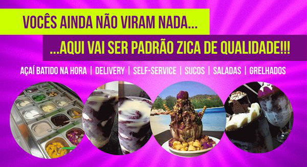 Outras novidades: taças sorvetes, Supremo zica, self service, delivery e saladas e tapiocas que irão ser comercializadas a partir de segunda-feira (14). O Zica do Açaí oferece desde a fruta pura até diferentes combinações em copos de 300 a até 700 ml.