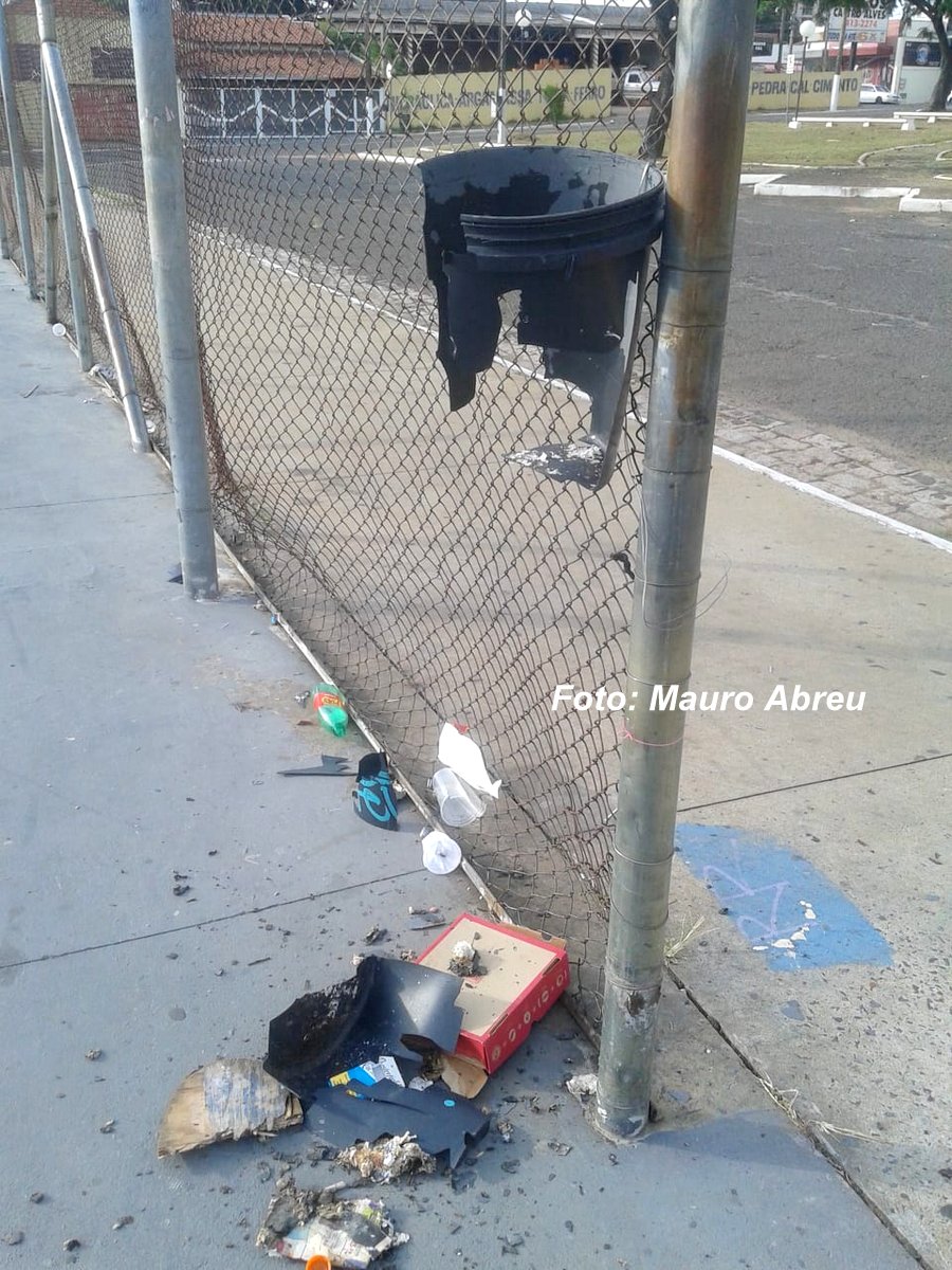 PISTA DE COOPER - Outro ato de vandalismo registrado na manhã de sexta-feira (11) aconteceu na pista de skate do bairro São Miguel que, após serviços de limpeza e capinação, teve lixeiras quebradas e o lixo espalhado pelo local, inclusive na parte interna da pista.