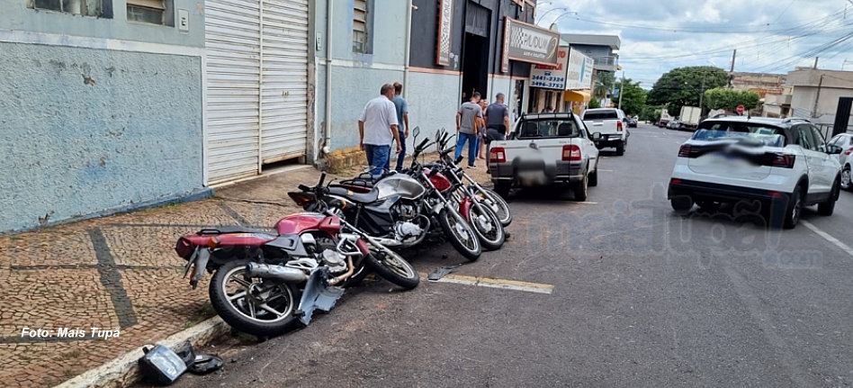 Com o impacto a condutora do T-Cross perdeu controle da direção vindo a chocar-se contra pelo menos 10 motocicletas que estavam estacionadas, chegando a empurrar uma delas para o meio da via pública, além de atingir mais um utilitário que também estava estacionado.