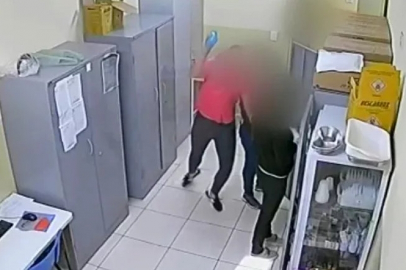 Duas funcionárias estão na sala e a agressora chega atingindo a colega com o objeto, aparentemente, de plástico. O caso teria ocorrido na última sexta-feira (25), porém o vídeo viralizou nas redes sociais nesta quinta-feira (31).