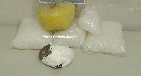 No interior da casa foi encontrado um saco grande na cor branca e em seu interior continha aproximadamente 1kg de cocaína e os pinos vazios.