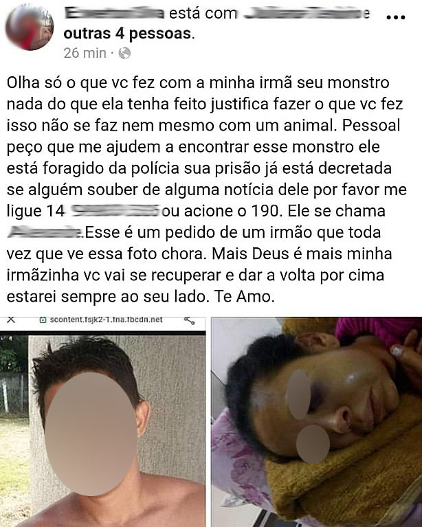 Revoltado, irmão da vítima mobiliza redes sociais atrás do agressor.