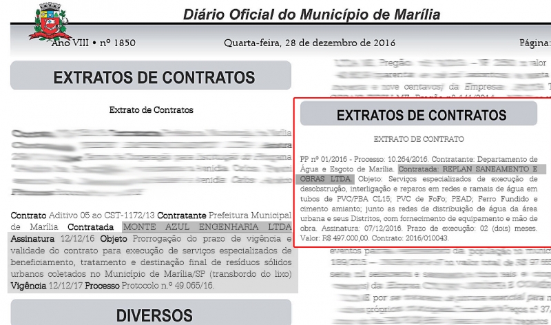 REPLAN - No caso da empresa que presta serviços ao DAEM (Departamento de Água e Esgoto de Marília) para fazer reparos nas redes, o parcelamento foi aprovado no dia 15 de dezembro, referente aos contratos 1172/13 e 1208/14 (está prevendo o pagamento dos valores atrasados em 15 meses).