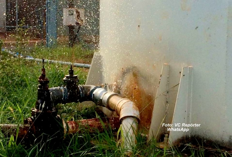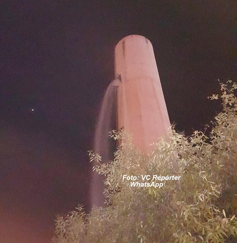 Durante a madrugada, um grande vazamento foi registrado na parte superior do equipamento. Internauta que passava pelo local registrou o flagrante e enviou foto via WhatsApp (99700-2463)