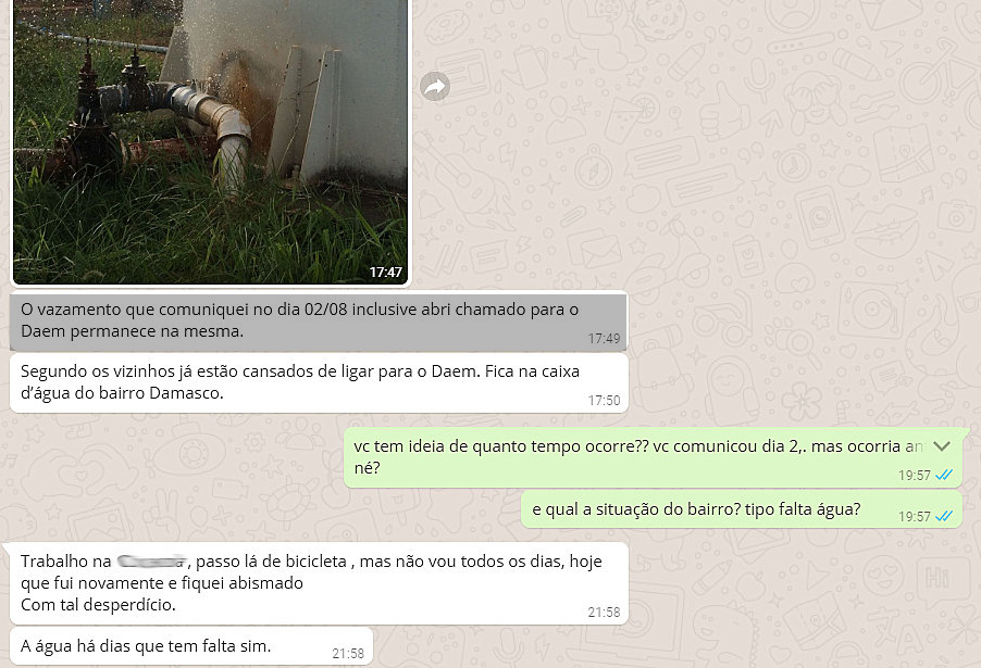 O DAEM já tinha sido notificado do problema desde a semana passada (02/08), mas nenhuma providência havia sido tomada. Diante disso, internautas enviaram mensagens ao Visão Notícias denunciando o descaso.