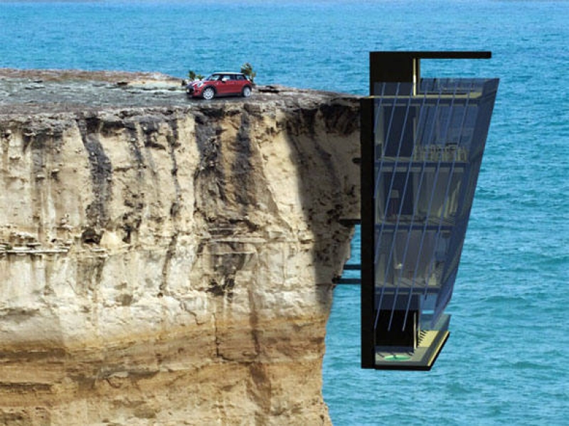 Já pensou em morar em uma casa cujo piso está longe do chão? Pois é essa a proposta da Cliff House, conceito criado pelo escritório de arquitetura australiano Modscape. O projeto tem estrutura de metal e vidro e seus cinco andares são sustentados por barras de aço fincadas no precipício.