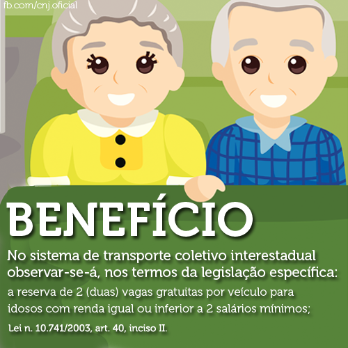 A legislação garante duas poltronas por ônibus rodoviário para os idosos. Para garantir a gratuidade, porém, é necessário que o idoso faça a reserva do lugar com no mínimo 24 horas de antecedência. No momento da reserva, ele deve apresentar RG e CPF. O prazo máximo para fazer a reserva é de cinco dias. Todos os detalhes estão na cartilha.