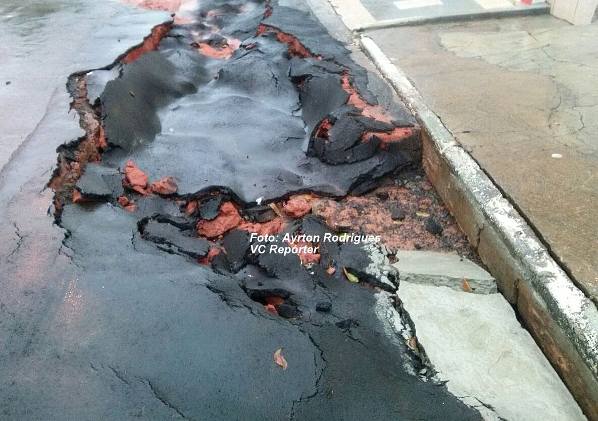 por causa de defeito na tubulação, mas por falha no serviço de tapa-buraco no local. A chuva forte que caiu hoje "levou" a camada de asfalto que foi colocada da rua Lima e Costa. O portal Visão Notícias.com enviou demanda à assessoria de Imprensa da Prefeitura, mas não obteve resposta.