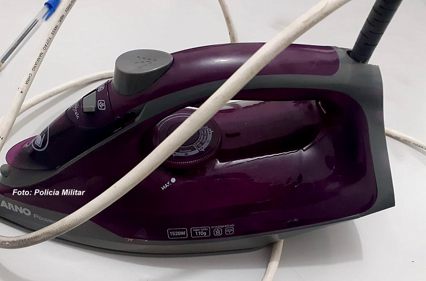 Ao abrir a porta dos fundos, viu um homem desconhecido tentando jogar pelo muro uma bicicleta da família e também já estava levando um ferro de passar roupa dentro de uma sacola. Como a mulher gritou por socorro, o criminoso resolveu ameaçá-la com uma faca, só que conseguiu correr de volta para o interior do imóvel, trancando a porta.