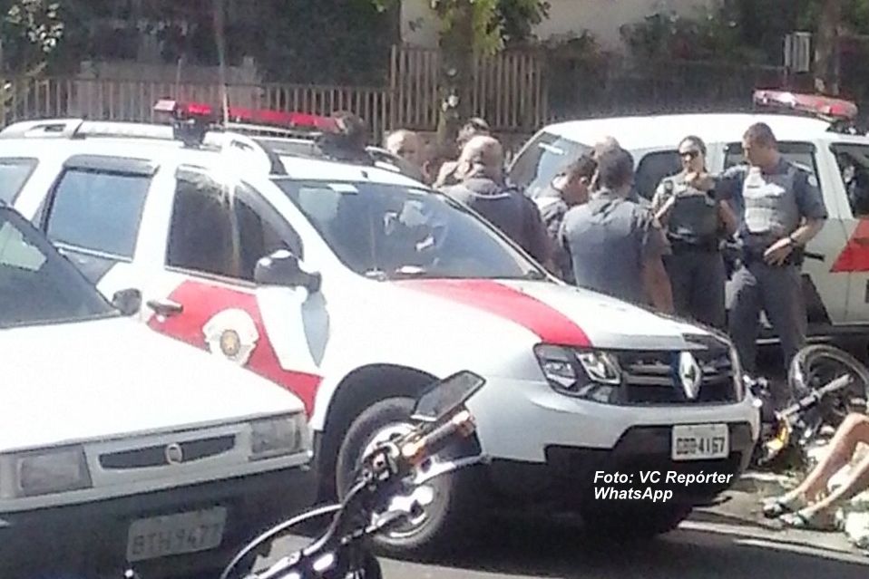 Policiais que faziam patrulhamento pela avenida Santo Antonio, próximo a Delegacia Seccional, suspeitaram de dois ocupantes de uma moto e tentaram abordá-los. Eles não obedeceram a ordem de parada e fugiram, inclusive adentrando a rua dr. Joaquim de Abreu Sampaio Vidal pela contramão e seguindo pela rua XV de Novembro até serem interceptados no cruzamento com a rua São Carlos.