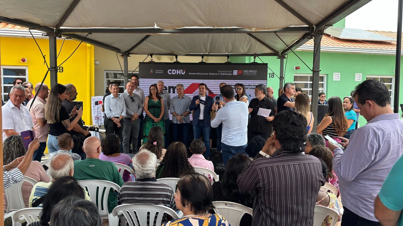 “O responsável por essa obra é o governador Tarcísio de Freitas. A Prefeitura de Marília é nossa grande parceira, e agradecemos o prefeito Vinicius Camarinha pelo apoio e pelo cuidado que terá nesse condomínio daqui em diante”.