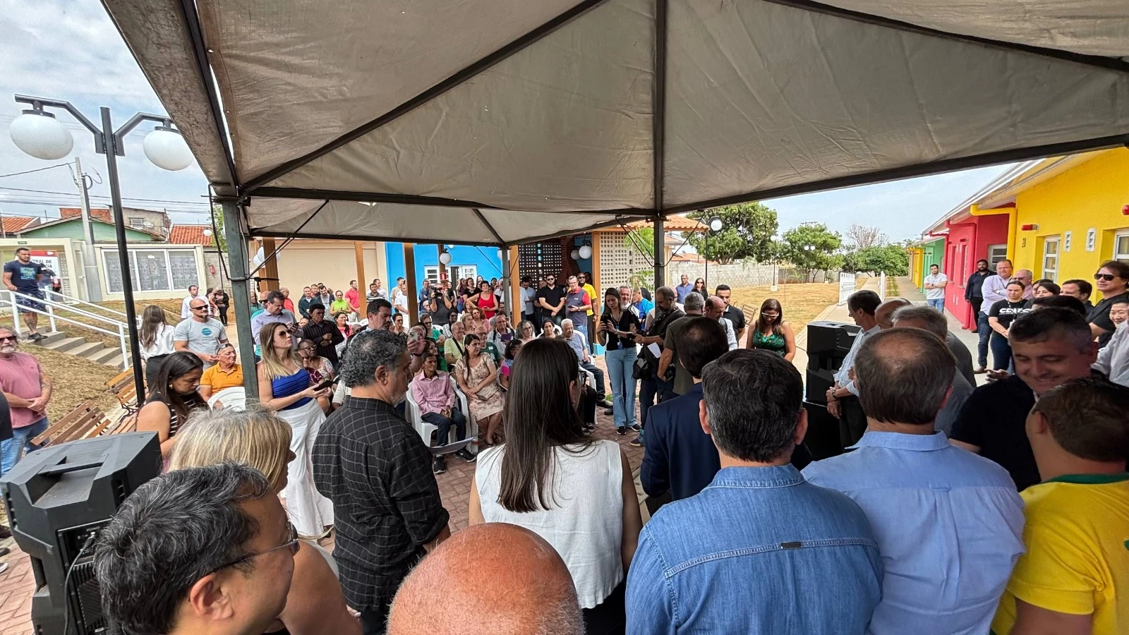 Após a fala das autoridades e a homenagem à família de Isaias Marroni, foi feito o descerramento da placa de inauguração pelo prefeito Vinicius Camarinha e demais autoridades presentes. Na sequência, foram conhecer a cada da dona Clarice Pereira.