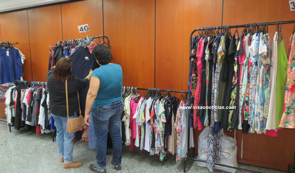 No bazar, são oferecidas roupas novas, direto da fábrica.