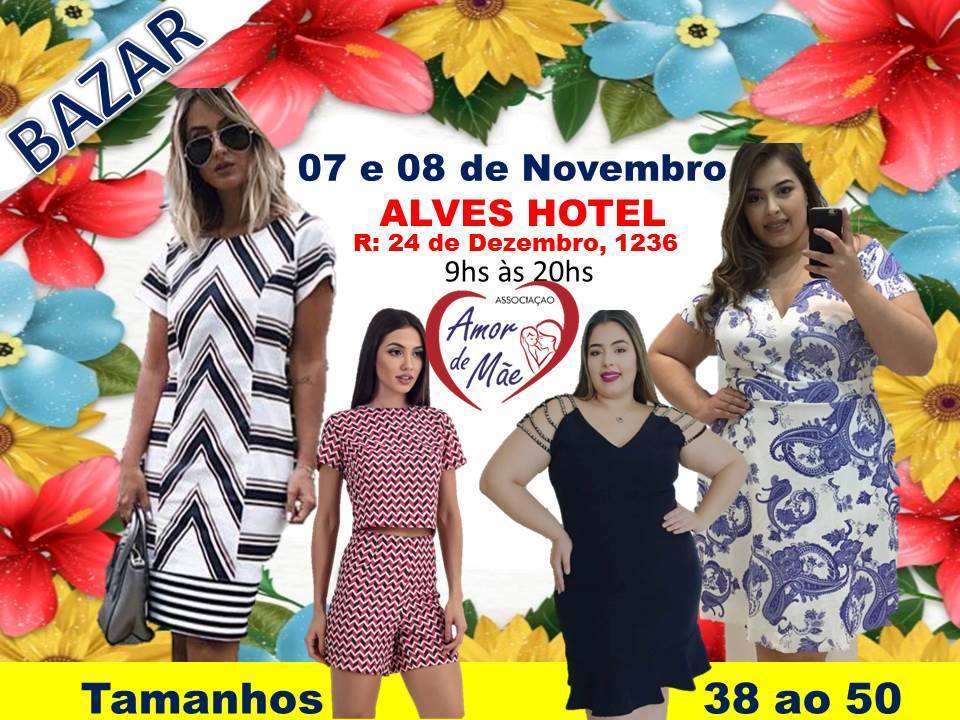 A Associação Amor de Mãe de Marília está realizando nesta terça e quarta (07 e 08/11) um Bazar de ROUPAS NOVAS e direto da fábrica com numeração de 38 a 50. O evento tem por objetivo arrecadação de fundos para a entidade e está sendo realizado no Alves Hotel, das 9 às 20h (salão de eventos - sala "Ana Carolina").