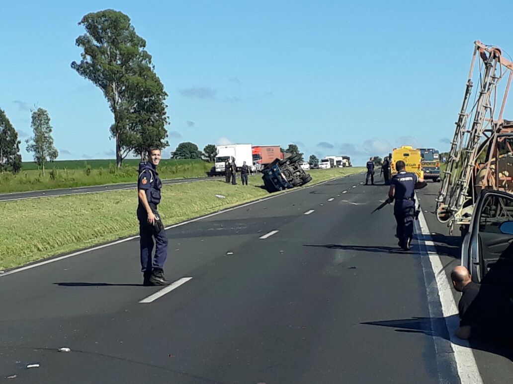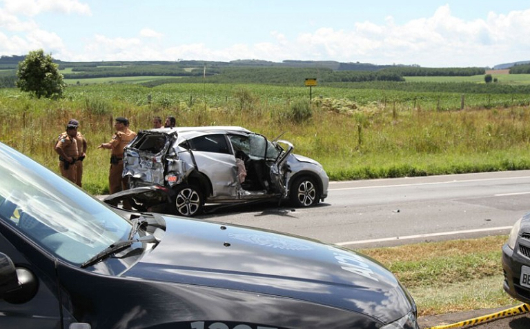 Duas pessoas morreram e outras quatro ficaram feridas em uma tentativa de assalto a cinco carros-fortes na BR-376, na Ponte do Rio Tibagi, próximo à Colônia