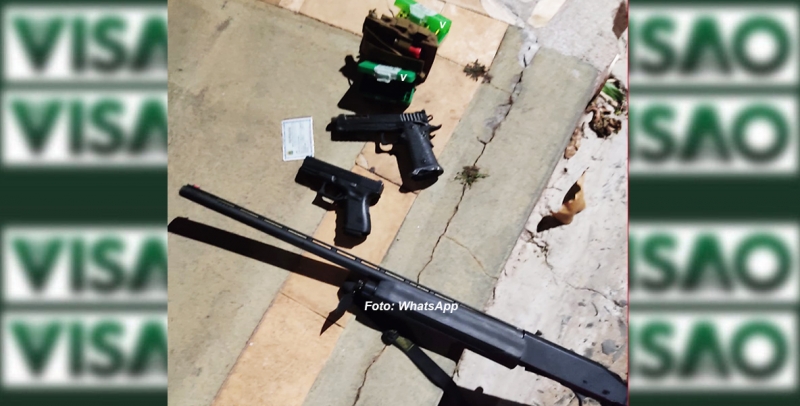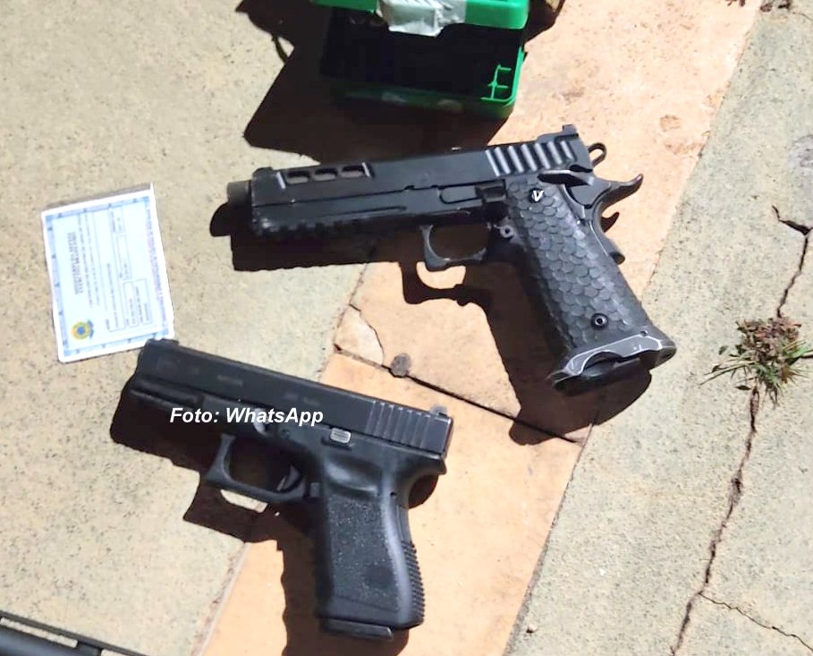No local, foram apreendidas duas pistolas e também uma espingarda, todas com registro.