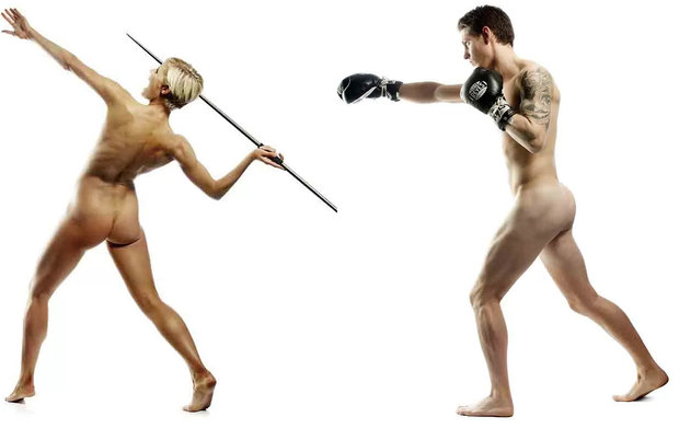 O ensaio mostra competidores de diversas nacionalidades, totalmente pelados, mas sempre com um acessório que identifique a modalidade a qual dedicam suas vidas.