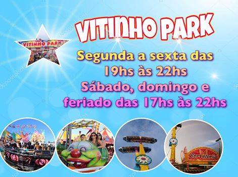 Sempre investindo em segurança e levando alegria pelas cidades por onde passa, o Vitinho Park traz inúmeras atrações para divertir toda a família, como Kamikaze, carrossel, carrinho bate-bate, montanha russa e muito mais.