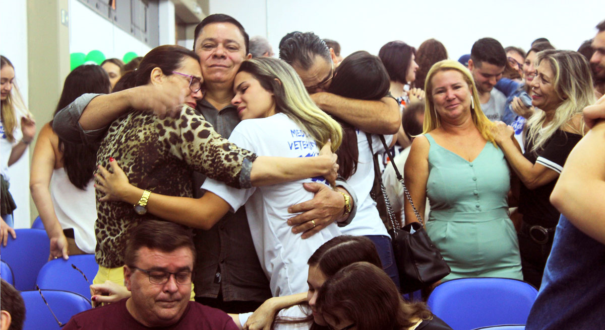 A “Aula da Saudade” foi organizada em segredo pela Coordenação do curso e docentes. Os graduandos acreditaram que no último dia iriam participar de palestras motivacionais, mas na verdade receberam a linda homenagem com a participação dos pais. A graduanda Ananda Martins Olegário disse que não esperava por este momento em seu último dia como acadêmica de Medicina Veterinária.
