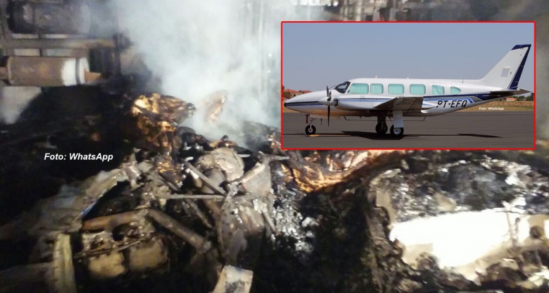 oito pessoas que estavam a bordo. O avião caiu e explodiu em seguida. Entre as vítimas estão o piloto, co-piloto, três adultos e três crianças.
