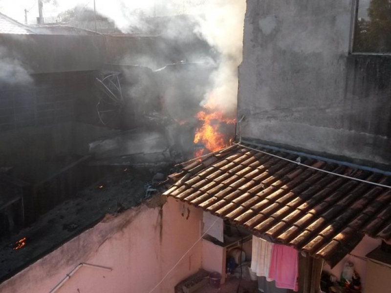 Após o acidente, o avião pegou fogo. Os bombeiros combateram o incêndio. As partes do avião ficaram espalhadas pelo imóvel.