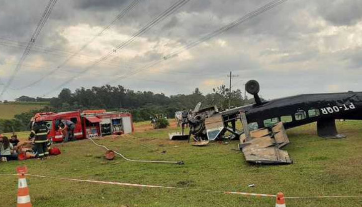 Duas pessoas morreram e pelo menos nove foram socorridas em estado grave depois que uma aeronave usada para saltos de paraquedistas fez um pouso de emergência no início da tarde desta quarta-feira (11) em Boituva no interior de São Paulo.
