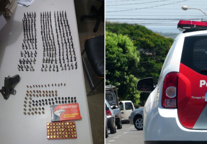 De acordo com informações da Polícia Militar, as equipes foram acionadas pela avó do acusado, de 19 anos, morador do bairro Morada do Sol. Ela informava que drogas, munições e uma arma estariam escondidas no imóvel sob guarda do seu neto. Quando as equipes chegaram ao local, o indivíduo estava saindo pelo portão, mas acabou detido. Em revista ao imóvel, os PMs encontraram 116 munições no calibre .380, uma pistola calibre 6.35 municiada com 13 cartuchos e aproximadamente 300 pinos de cocaína.