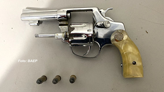 Com ele, foi localizado um revólver calibre 32, com três munições, além de uma bolsa contendo grande quantidade de drogas.