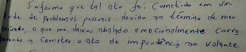 - Não fez o bafômetro porque tinha prótese dentária e não quis passar constrangimento já que tinha muita gente no local;