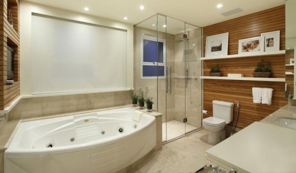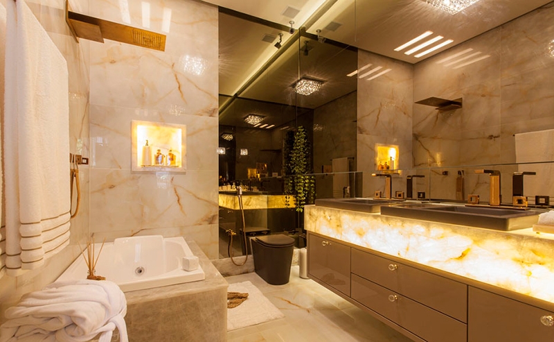 Investir em acabamentos diferenciados, como ladrilhos e pastilhas de vidro, faz com que o banheiro tenha mais personalidade, pois foge do tradicional azulejo e piso cerâmico já tão batidos. Há também diversas novas opções de louças, metais e armários para banheiro no mercado atualmente, que são repletas de sofisticação e modernidade.