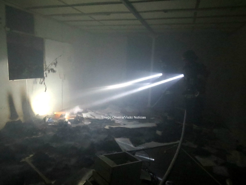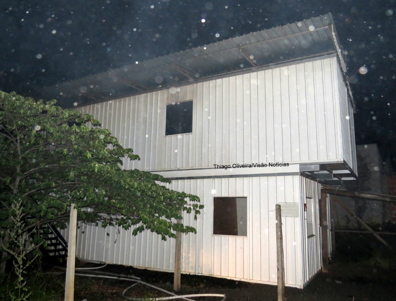 O barracão de alumínio, em formato de container, ficou parcialmente danificado já que os bombeiros chegaram rapidamente ao local e controlaram as chamas.