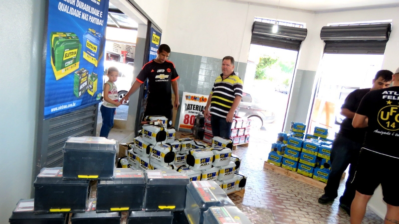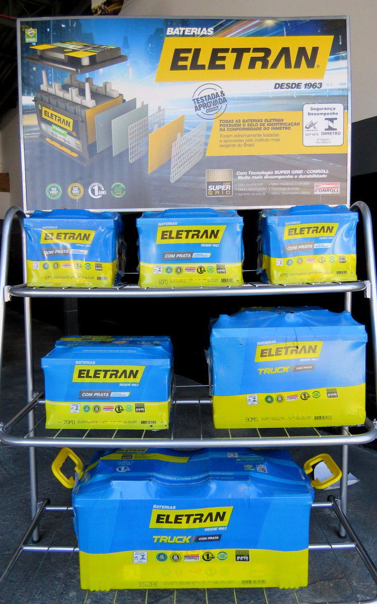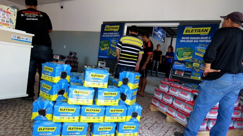 - Baterias ELETRAN: 47 AH, por R$ 199,00/ 60 AH, R$ 229,00 / 105 AH, R$ 420,00 / bateria para caminhão (152 AH), por R$ 599,00 / para moto (6 e 7 AH), por R$ 130,00 / e para Honda Civic, R$ 299,00.