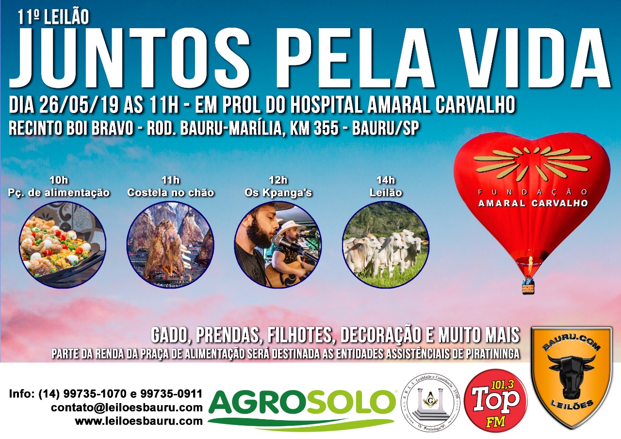 Neste domingo (26), ocorre em Bauru o 11º Leilão Juntos Pela Vida, organização voluntária da Bauru.com Leilões em prol do Hospital Amaral Carvalho (HAC). As atrações têm início às 11h, com entrada gratuita.