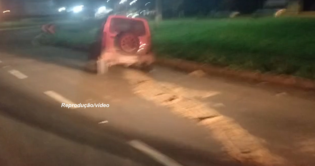 Em determinado momento o condutort deparou com uma motocicleta caída no meio da pista e ao lado o motociclista que provavelmente havia sofrido uma queda acidental ou envolvido em outro acidente.