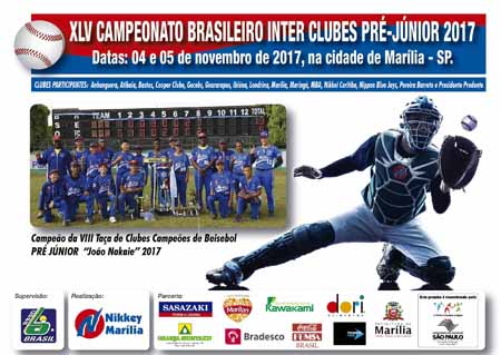 A realização do 45º Campeonato Brasileiro de Beisebol Pré-Junior 2017 conta mais uma vez com o apoio da Prefeitura, por meio da Secretaria Municipal de Esportes e Lazer, sob o comando do secretário Eduardo Nascimento, bem como as empresas Sasazaki, Marilan, Dori e supermercado Kawakami..