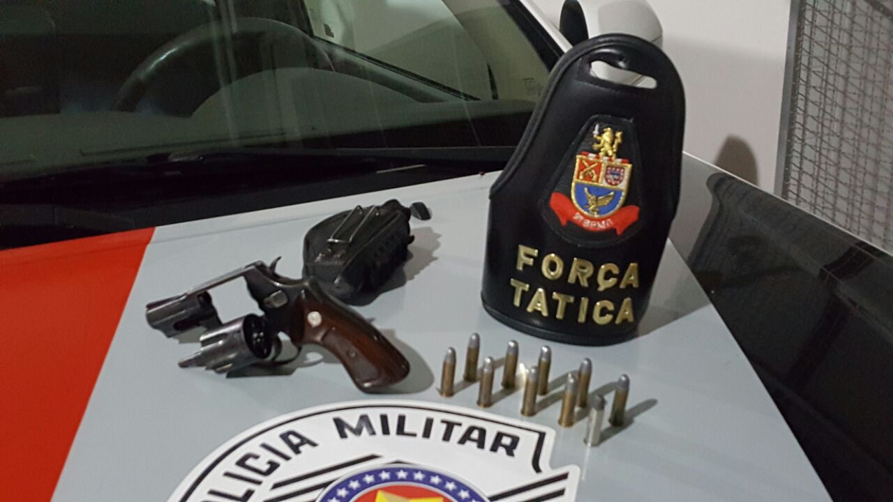 revólver calibre 38. Os policiais estavam em patrulhamento pela região. Ao suspeitarem da atitude de um homem que estava mexendo no motor de um carro, decidiram parar e fazer perguntas.