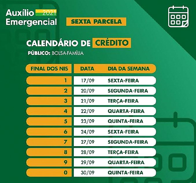 Os pagamentos são feitos a cada dia, conforme o dígito final do NIS. As datas da prorrogação do auxílio emergencial foram anunciadas em agosto.