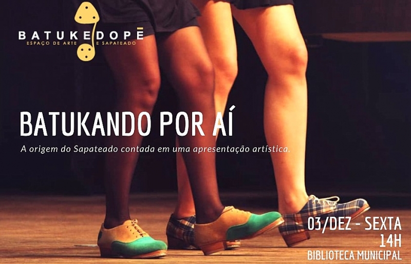 Na próxima sexta-feira (dia 3) será realizado em Marília o evento "Batukando por aí" que visa levar a arte do sapateado para todos os públicos. A apresentação será na Biblioteca Municipal, às 14h, com entrada gratuita.