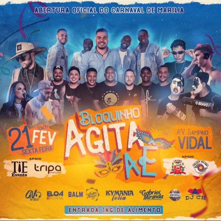 Acontece nesta sexta, a partir das 18h, o Bloco Agita Aê – dando continuidade à programação de Blocos na Avenida das Indústrias (próximo ao Ganha Tempo).