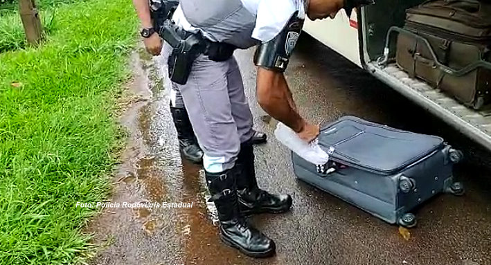 Em determinado momento, os policiais rodoviários deram ordem de parada a um ônibus interestadual que seguia de Corumbá/MS com destino a São Paulo.