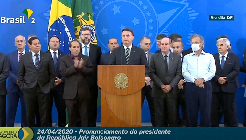 "Ao prezado ex-ministro. Como você disse na sua coletiva por três vezes que tinha uma biografia a zelar, eu digo que eu tenho o Brasil a zelar", disse Bolsonaro no pronunciamento desta tarde.