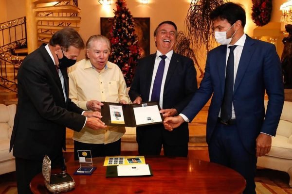 Silvio Santos completou 90 anos no último sábado (12/12) e recebeu, um selo comemorativo dos Correios em alusão à data das mãos do presidente Jair Bolsonaro.