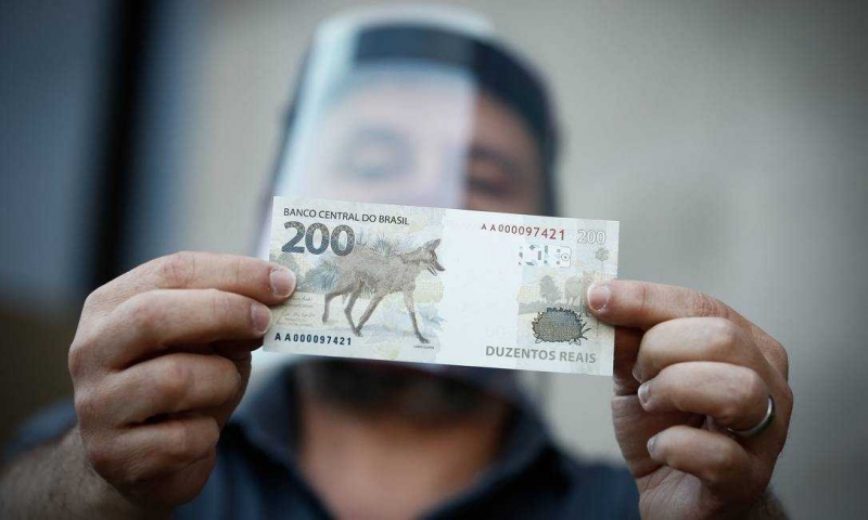O bombeiro militar Athos Camargo, de 50 anos, foi o primeiro da fila para conseguir a nova cédula de R$ 200, com o lobo-guará, na sede do Banco Central, em Brasília.