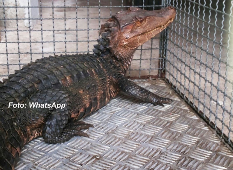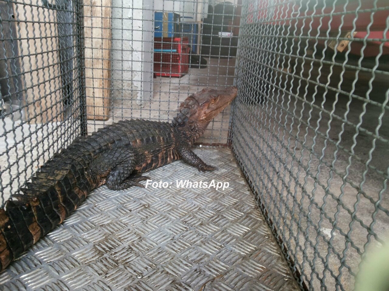 Um jacaré, aparentando já ser adulto, foi capturado pelo Corpo de Bombeiros no começo da noite desta sexta (13) em Marília. O animal permanece numa jaula e na segunda-feira será encaminhado à Polícia Ambiental e posteriormente devolvido à natureza, em local seguro.