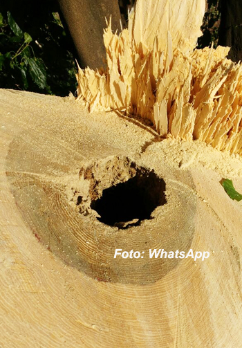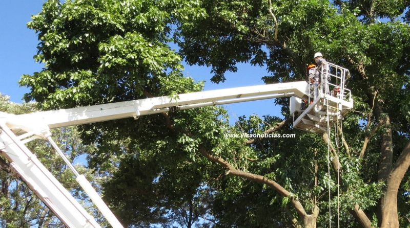A árvore, da espécie Pau d´alho, tem mais de 20 anos e estaria correndo risco de cair. Os técnicos constataram que estaria totalmente oca por dentro e, devido a sua altura, a força do vento poderia arrancar galhos ou até troncos. Um galho já tinha caído em cima de um veículo.