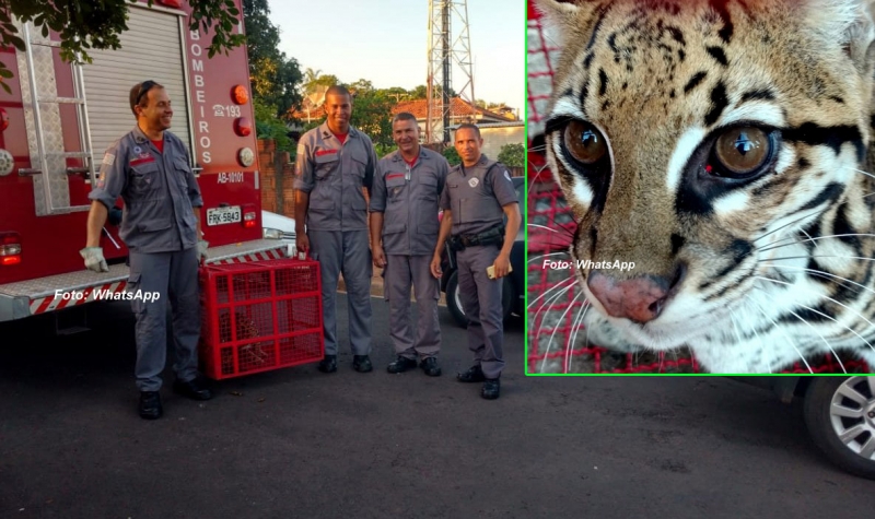 Uma jaguatirica foi capturada no final da tarde desta sexta-feira, em Julio Mesquita, pela equipe de salvamento do Corpo de Bombeiros de Marília. O animal estava no quintal de uma casa e assustou os moradores.