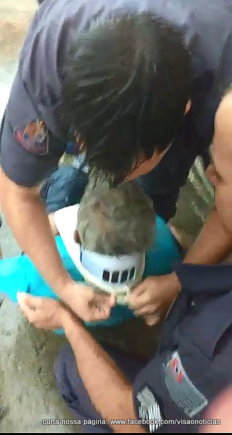 Bombeiros socorrem a vítima depois de ter sido retirada do bueiro: resgate dramático.
