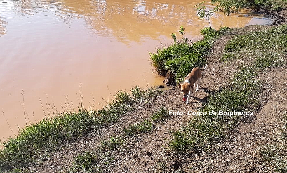 Cão Thor, que pertencia à vítima, ficou agitado às margens do açude e não se separou em nenhum instante após o corpo ter sido retirado pelos Bombeiros. Cena emocionou as equipes de resgate.