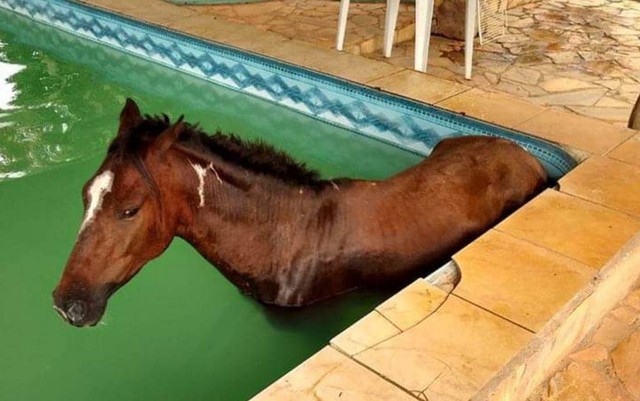 O Corpo de Bombeiros atendeu a uma ocorrência inusitada em Caldas Novas. A equipe foi acionada para realizar o salvamento de um cavalo que caiu dentro de uma piscina localizada em uma Fazenda, na Zona Rural da cidade.