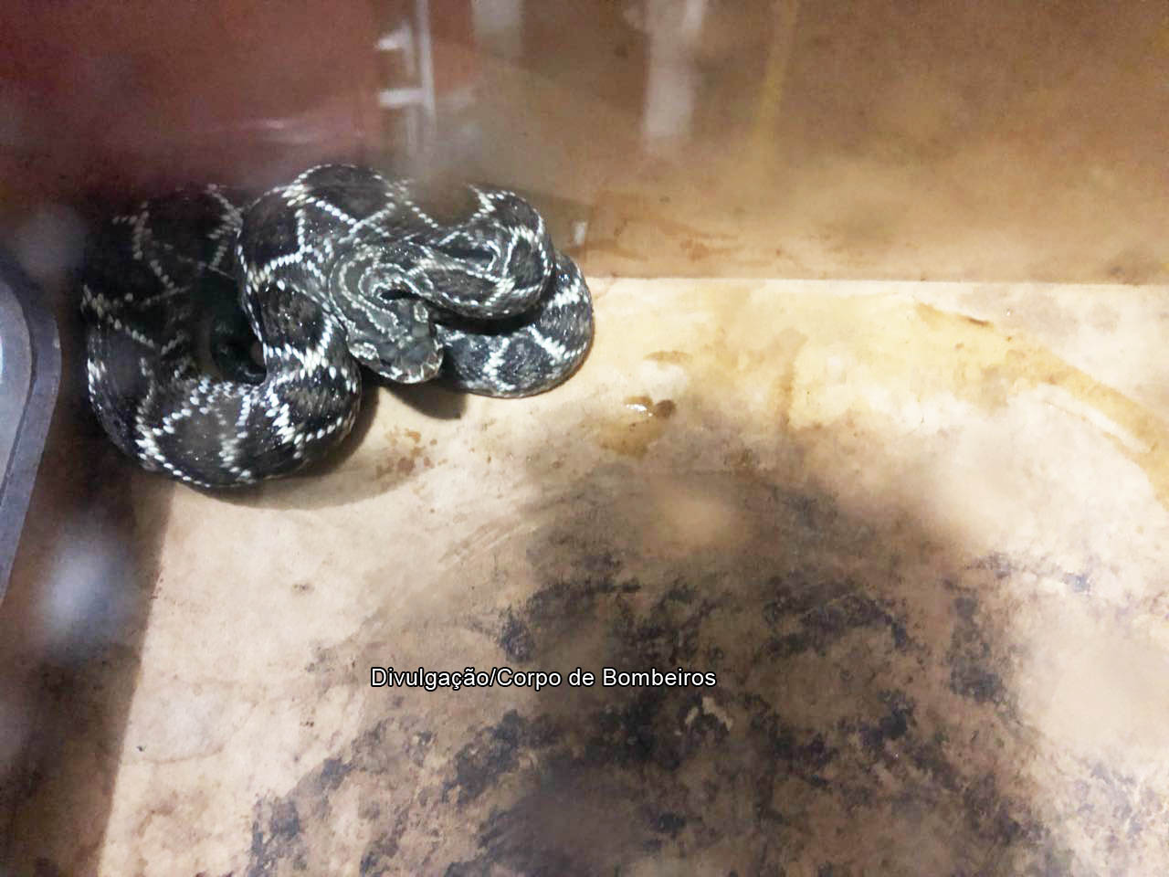 Equipes do Corpo de Bombeiros resgataram na manhã desta segunda-feira (15) uma cobra da espécie Cascavel. A serpente foi encontrada por moradores de uma residência no jardim Acapulco, zona oeste da cidade, que acionaram as equipes através do telefone 193.